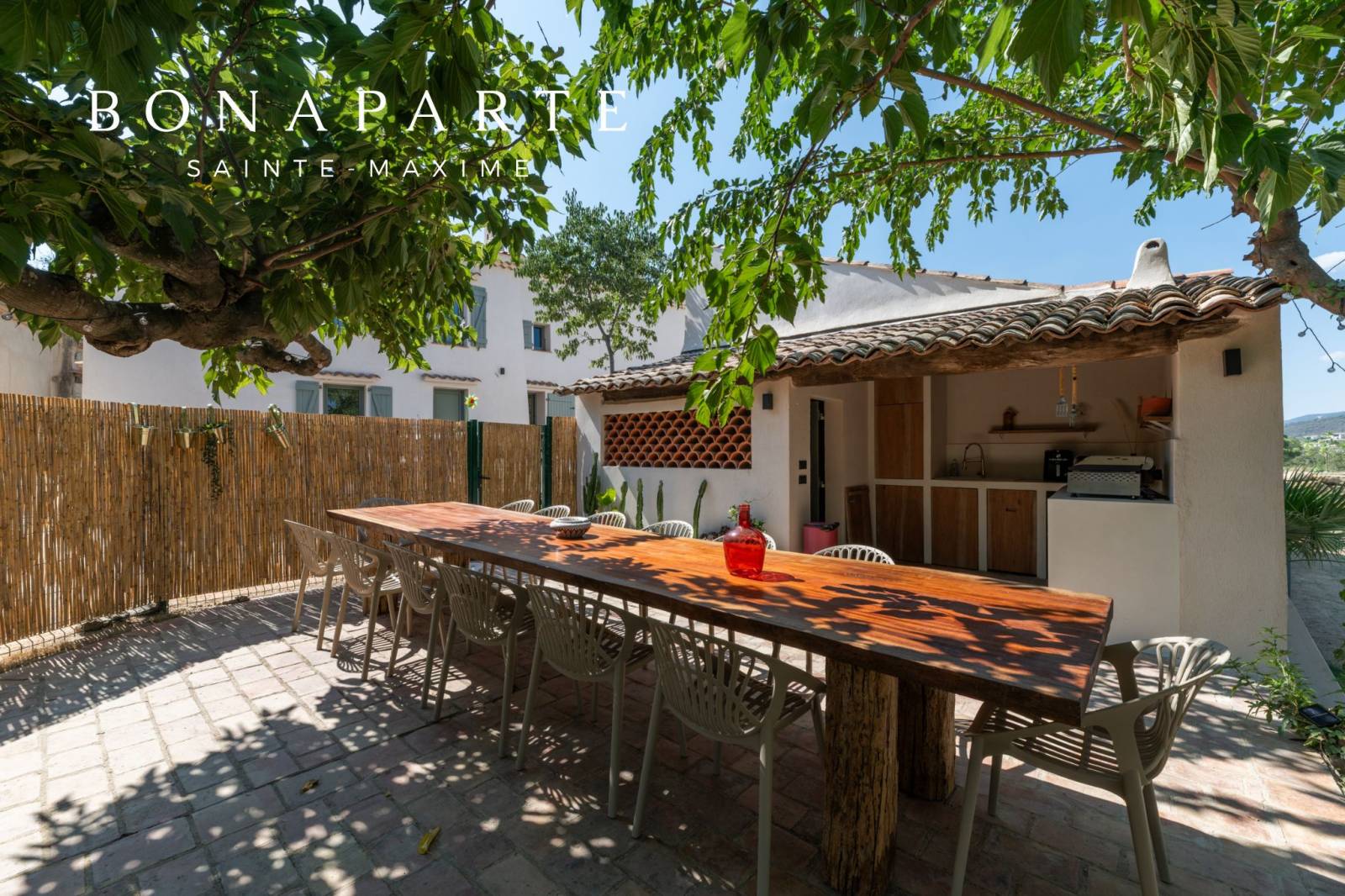 Un espace extérieur dédié au salon et un boulodrome ajoutent une touche de loisirs supplémentaire à cette propriété d'exception.
